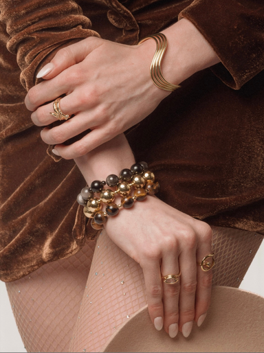The Lennon Bold Gemstone Stretch Bracelet by Kinsey Designs is a striking accessory. This black chunky beaded bracelet showcases a bold design that...