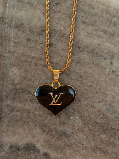 The cutest Black puff heart with the LV logo. With the gorgeous 18 inch gold filled rope chain!