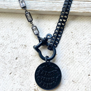 Our Lennon Gemstone Open Clasp Heart Necklace is an exquisite piece from Kinsey Designs. It features a striking black chunky bead with a heart pend...