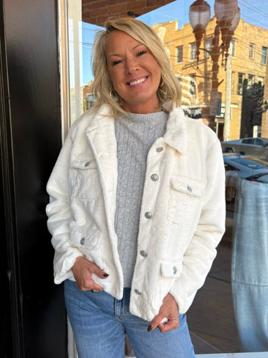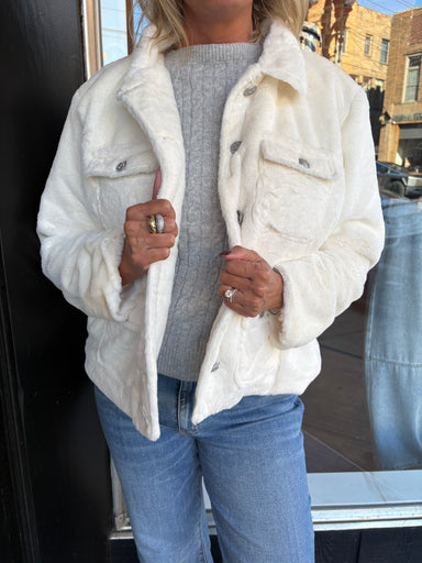 Polished and playful, the Autumn Jacket brings cozy sophistication to your wardrobe. Designed with a soft, plush texture and a cropped, boxy silhou...