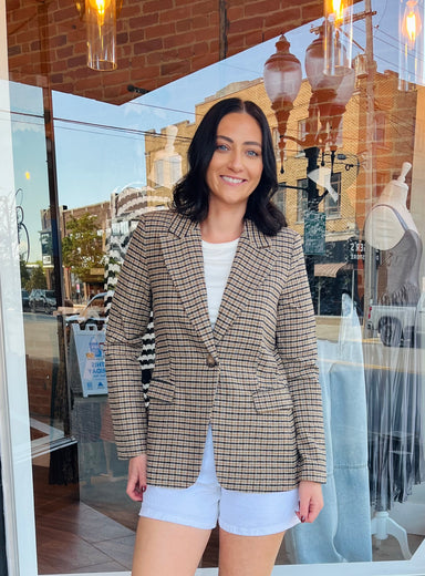 Tailored with a modern edge, the Selma Plaid Blazer is a timeless wardrobe essential. Its structured silhouette, single-button closure, and classic...