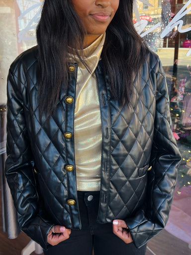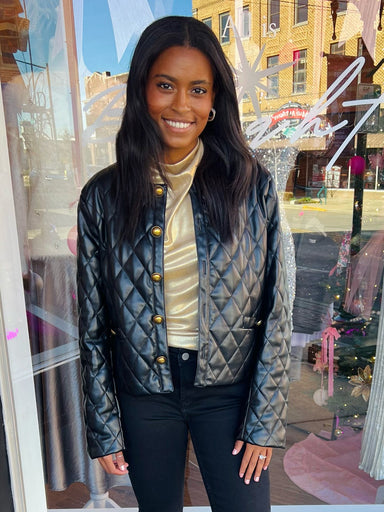 Chic meets cozy in The Bonheur Jacket — a timeless black quilted layer with a sophisticated, Parisian-inspired twist. Crafted from smooth faux leat...