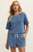 This short sleeve sweatshirt is the perfect lightweight layer made of knit denim french terry. Make it a set with its matching short, or throw it on with linen trousers.