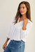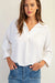 This crinkled woven top features a relaxed, boxy fit with a clean front pleat, dropped shoulders, cuffed 3/4 sleeves, and a crisp point collar for a polished yet easygoing everyday look.
