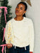 This cream cable knit cardigan offers a fresh take on a classic style. It features traditional cable stitching and satin ribbon accents along the front for a clean, modern look. The soft knit fabric provides warmth and comfort, while the button-down front and ribbed trim give it a structured finish. Easy to layer over any outfit, this cardigan pairs well with jeans, trousers, or skirts for everyday wear.