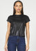 Sleek, bold, and endlessly versatile — The Unity Top is your new go-to for effortlessly edgy style. Crafted from a soft faux leather fabric with a subtle sheen, this elevated take on a classic tee adds instant polish to any outfit. The minimalist crew neckline and short sleeves keep it timeless, while the smooth, tailored fit flatters your silhouette with modern confidence.