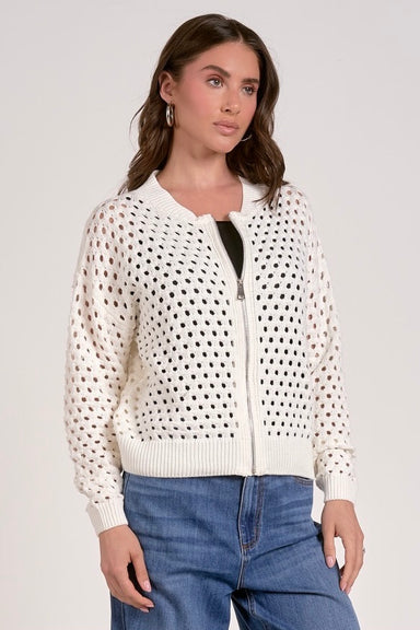 A refined essential with a romantic twist, this white pullover features intricate lace cutout detailing along the shoulders and sleeves for a subtl...