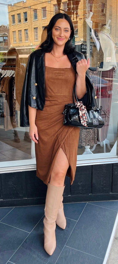 Soft, feminine, and effortlessly flattering, this midi dress is made for easy elegance. Designed with a subtle textured fabric and a flattering ruc...