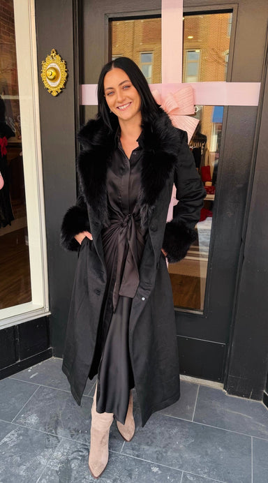 Step out in style with the Checkroom Coat! Falling just above the ankle, this luxe piece features a faux fur collar and a detachable belt, adding d...