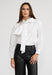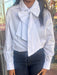 Classic meets modern in this chic, statement-making white blouse. Designed with a crisp button-front silhouette and an exaggerated self-tie bow at the neckline, it blends timeless tailoring with elevated femininity. Subtle volume through the sleeves adds a touch of drama, while clean lines keep the look polished and versatile.