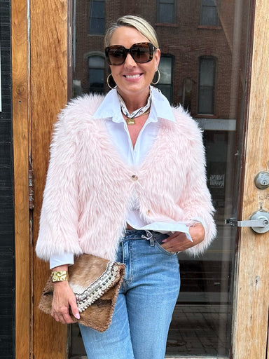 Make an entrance with this luxe statement layer. The Cyndi Faux Fur Jacket features a plush, shaggy faux-fur texture in a soft winter-white hue—ins...