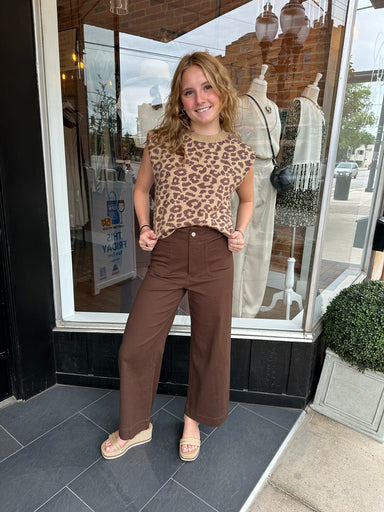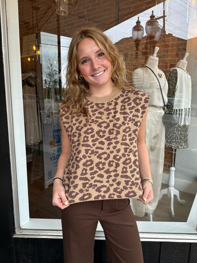 This sleeveless knit sweater vest features a classic leopard print in warm neutral tones. Designed with a soft, lightweight feel, it’s perfect for ...