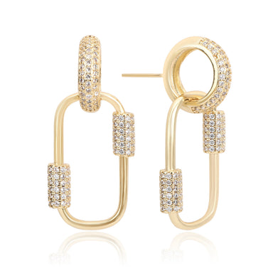 Bold, brilliant, and made to turn heads — the Cher Drop Earring features a cascade of geometric CZ stones in varying cuts and sizes, all set in rad...