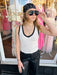 Elevate your everyday essentials with this sleek and versatile sleeveless top. Designed with a flattering V-neckline and bold contrast trim, this piece blends minimalist style with modern sophistication. The clean white body is accented by black edging along the neckline and shoulders, creating a polished look that transitions effortlessly from casual to smart-casual occasions.