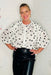 This sheer polka dot blouse adds a subtle statement to an otherwise classic silhouette. Designed with a lightweight textured fabrication and soft gathering at the shoulders, it brings volume and movement while maintaining an effortlessly polished look. Finished with a button-front closure and relaxed fit, it’s perfect for elevating everyday denim or pairing with tailored bottoms for a chic, feminine outfit.