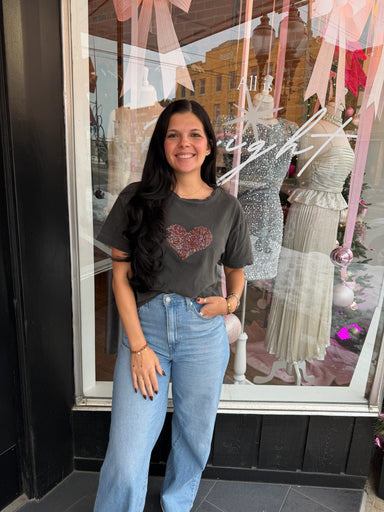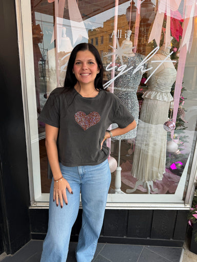This charcoal graphic tee brings instant charm with its glittery heart centerpiece. It’s comfy, stylish, and adds just the right amount of sparkle ...