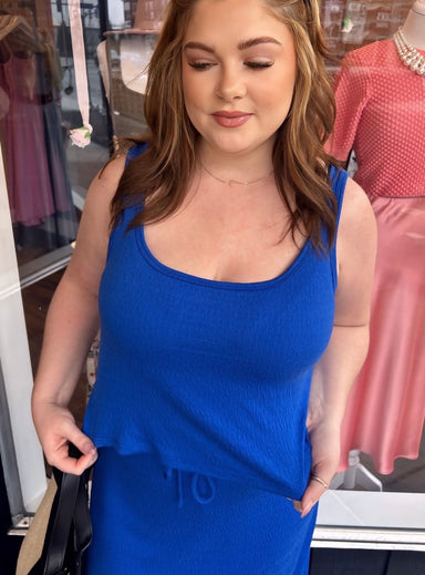 Designed in a textured puckered knit, this relaxed scoop-neck tank feels effortless and feminine, with light movement that makes it easy to style s...