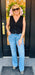 This sleeveless top will be an easy wardrobe staple with its button front, v-neck, and 100% cotton jersey fabric. Make it your go-to outfit and pair with its matching pant or wide leg denim.