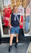 Classic with a cool-girl twist. This navy knit sweater vest features a textured ribbed pattern and a built-in contrast collared neckline for that perfectly layered look—without the bulk. The sleeveless silhouette and slightly cropped length make it easy to style now and later, whether worn solo or layered under a blazer or jacket.