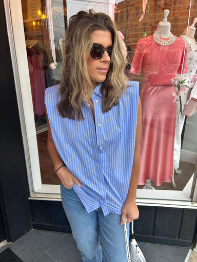 A sleeveless shirt with a little extra structure. Designed with subtle shoulder pads for a strong, modern silhouette, this piece brings effortless ...