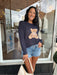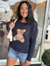 Playful meets cozy with this adorable navy knit sweater featuring a sweet teddy bear graphic front and center. Designed with a relaxed fit and lightweight open-knit texture, it’s the perfect piece for layering year-round. Pair it with denim shorts for a casual daytime look or style it with your favorite jeans for a comfy-cute vibe. A must-have for adding a touch of charm to your everyday wardrobe!