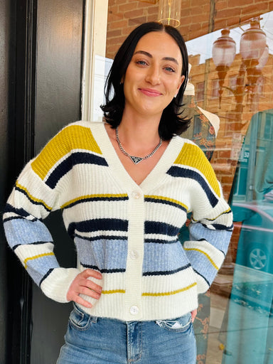 Fresh, cozy, and effortlessly cool — the Sasha Cardigan brings a pop of color to your fall lineup. Featuring wide horizontal stripes in soft blue, ...