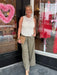 Delicate details meet everyday wear in the Camille Crochet Tank. Designed with a soft open-knit crochet bodice, subtle high neckline, and a scalloped hem for a feminine finish, this top brings effortless charm to any outfit. Lightweight and breathable, it’s perfect for warm days or layered under a jacket when the temps drop. Dress it up with tailored bottoms or keep it casual with denim for an easy, polished look.