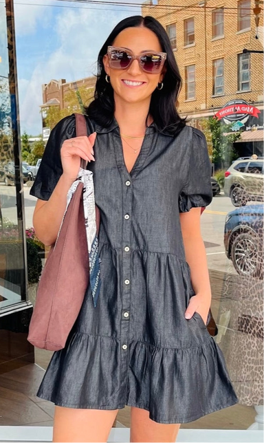 We love a denim dress and the Sophia is vintage black is no exception! Pair with booties or sneakers!