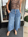 Upgrade your denim game with these wide-leg jeans, featuring a flattering high-rise fit and statement button-front closure. Made from soft, lightweight denim, they combine all-day comfort with standout style. The flowy, cropped cut gives a laid-back yet polished vibe—perfect for pairing with fitted tops, sneakers, or wedges for an easy, on-trend look.