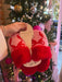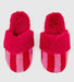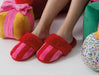 Get festive and comfy in the Cozy Bow Slippers by Shiraleah. These plush pink slippers with bold red bow accents are perfect for lounging in style or gifting during the holiday season.