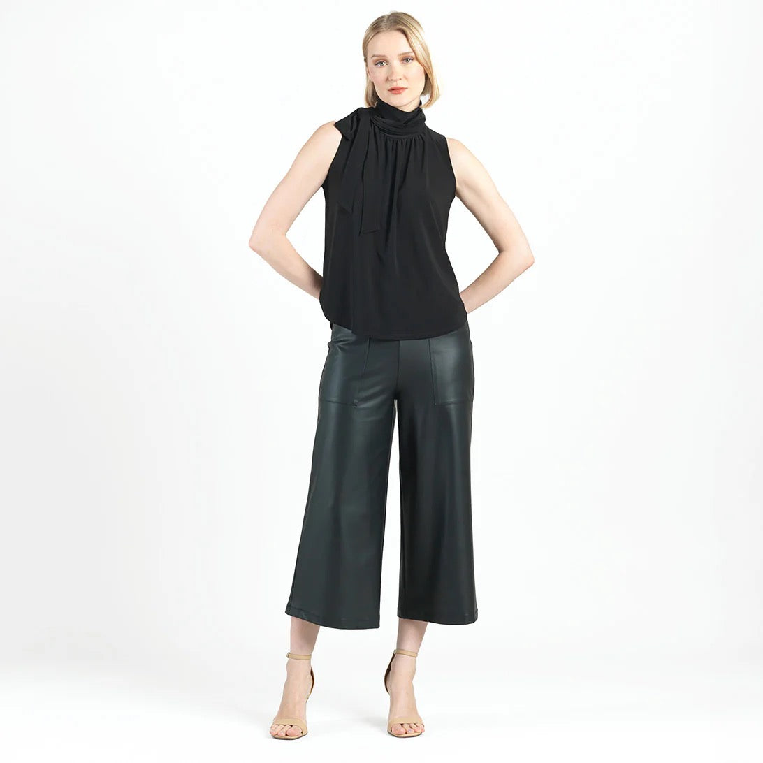 Add a touch of elegance and versatility to your wardrobe with our Mock Neck-Tie Detail Top! This sleeveless, bra-friendly style features a charming mock neck-tie detail that can be styled multiple ways, and feminine micro-pleats that begin at the neck and transition to a soft-draped body, with a 3" side-vented scallop hemline.
